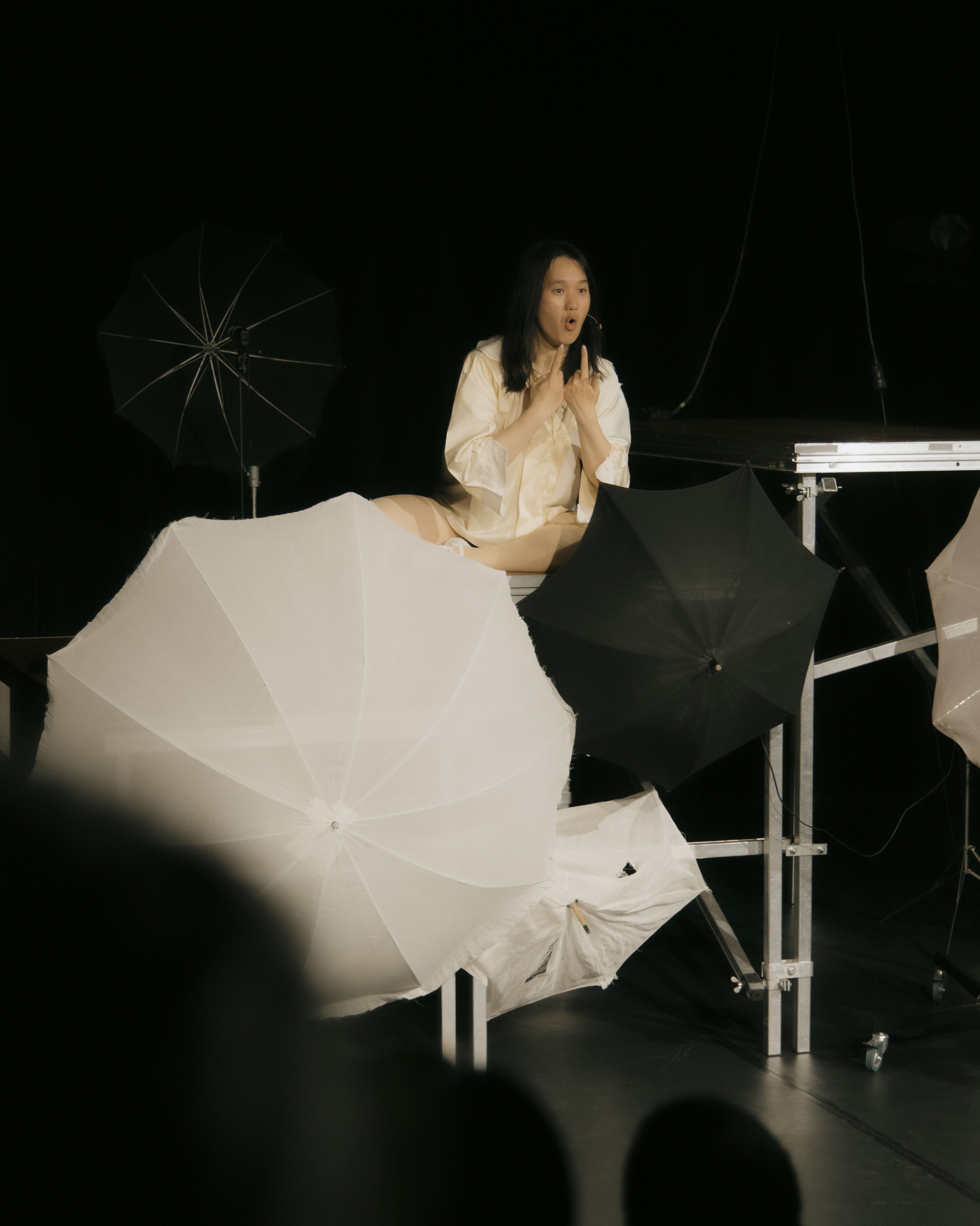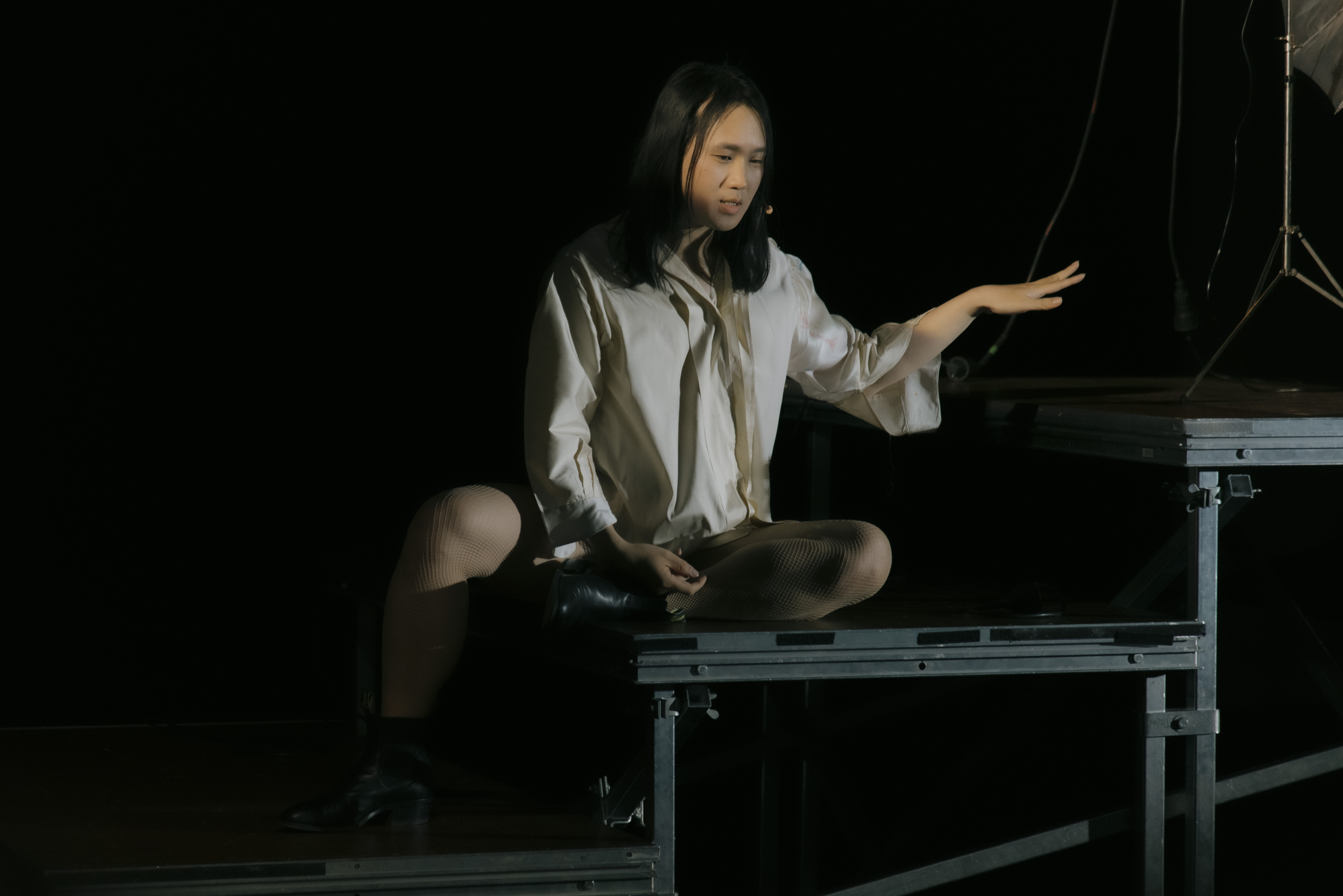 Ivan Cheng’s works, which are interested in compression and context, are mostly shown in contemporary art spaces. Working with an interest in making theatrical devices visible and making the audience aware of the space between the material and its interpretation, Nowadays is largely informed by two culturally dispersed narratives, which have also had iterations as successful Broadway musicals – Chicago and Spring Awakening. For Cheng, both have narratives that are propelled by forms of misunderstanding or factual obfuscation. Ivan Cheng’s Nowadays emerges desultory from the artifice abyss of theatre, using historical and staging references to indicate towards the fragmented contemporary, where the notion of the criminal or dissident is still produced and romanticised by techniques of representation.