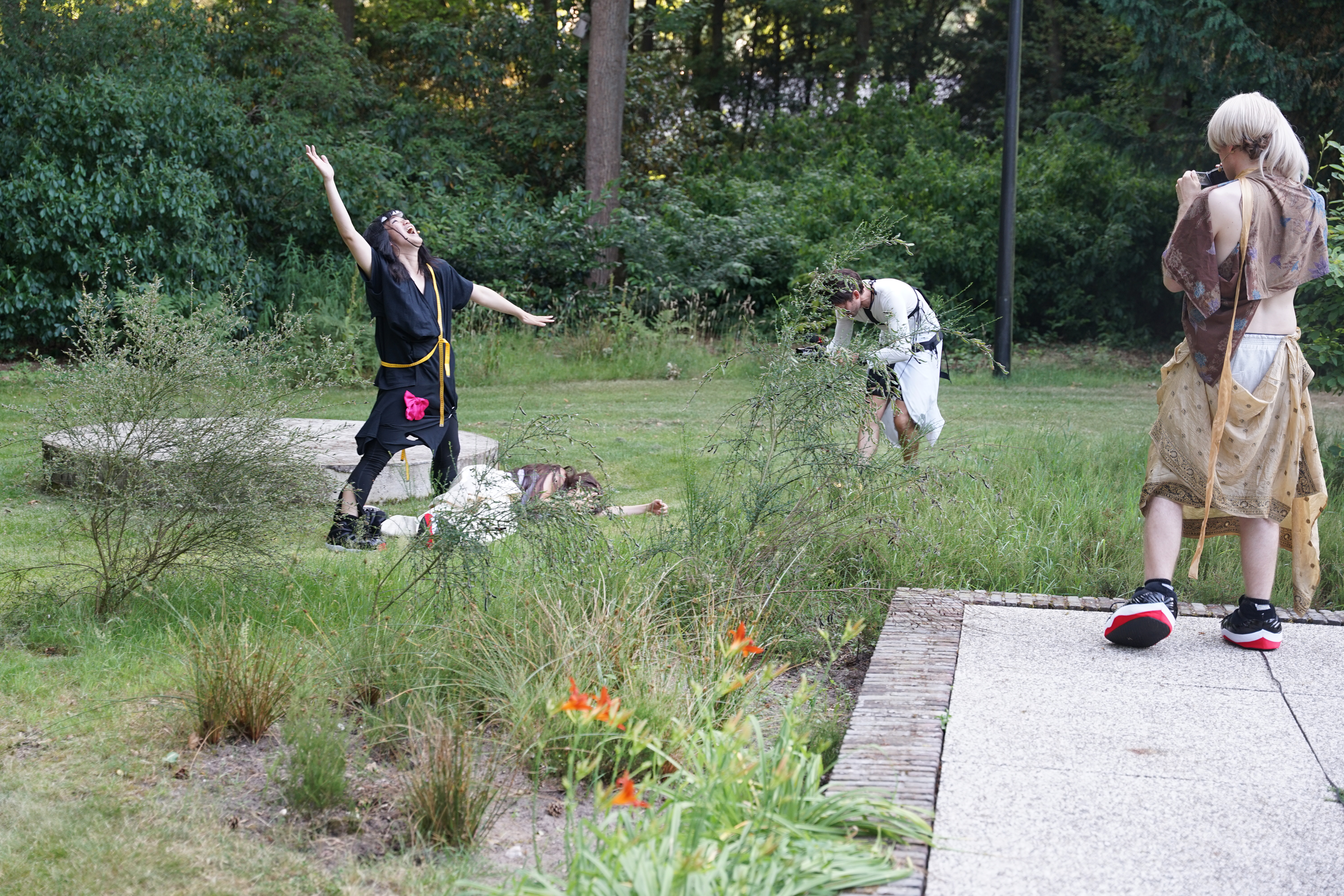 Red Herring (Piet’s Escape Room) runs the genre of horror through the filter of neo-plastic abstraction and reconstitutes it as a filmed musical revue. For his first presentation connected to The Mondrian Prize, Ivan Cheng has run a short workshop with students from Laar & Berg, with the intention to activate the garden, terrace and interior of Huis Bosschaert - the last house designed by architect Gerrit Rietveld. On 1 July, Cheng will be be joined by Sophia Dinkel, Max Grund, Arvo Leo, with garments by Good & Bad (Marina M. Kolushova, Victor Stuhlmann and Ossi Lehtonen) in a filmed performance of the workshop outcomes.